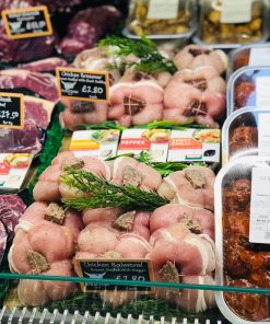 Our Chicken Braemar are stuffed with Black Pudding and wrapped in a rasher of unsmoked Back Bacon.